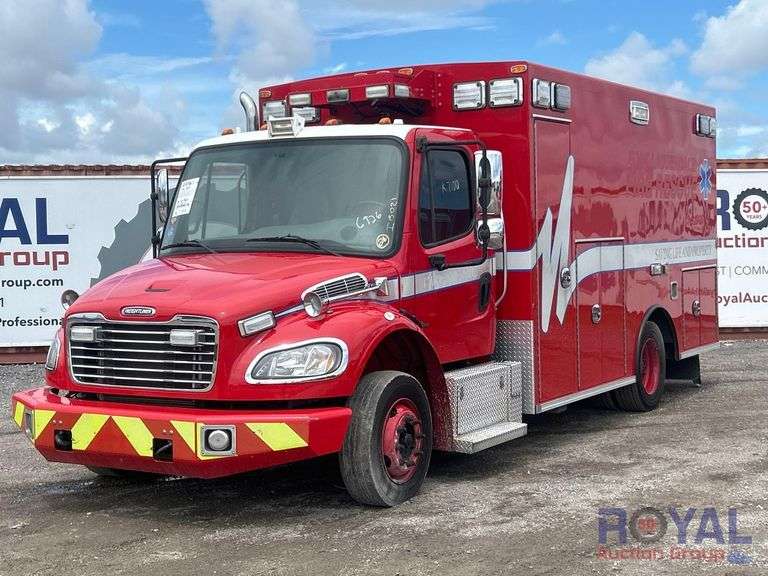 City of Fort Lauderdale (6926), VIN: 1FVACWDT7GHGU7100, Odom Reads: 131,918 miles. Powered by a Cummins 6.7L 6-cylinder Turbo Diesel Engine, Allison Automatic Transmission. Equipped with Braun medical ambulance service body, large external and internal storage compartments, paramedic and passenger seating, oxygen delivery outlets, digital medical equipment management system, Dimensions power inverter, air suspension dump, front and rear climate controls, Whelen emergency sirens and lights, air brakes, power windows, locks, and mirrors, 12V charging. Runs and drives, Limited function check completed at check in.