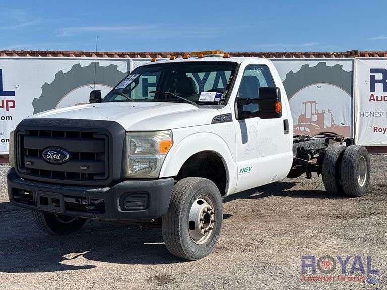 VIN:1FDRF3H61FEB95887 Odom Reads 66,687 miles, pwd by 6.2L V8 natural gas engine, automatic transmission. Equipped with: cab and chassis, four wheel drive 4WD, dual rear wheels, GVWR 14,000 lbs, front GAWR 5,600 lbs, and rear GAWR 9,750 lbs, pwr windows, mirrors and locks, auxiliary switches, am/fm stereo, AC/heat. Runs and drives. Limited function check completed during check in.