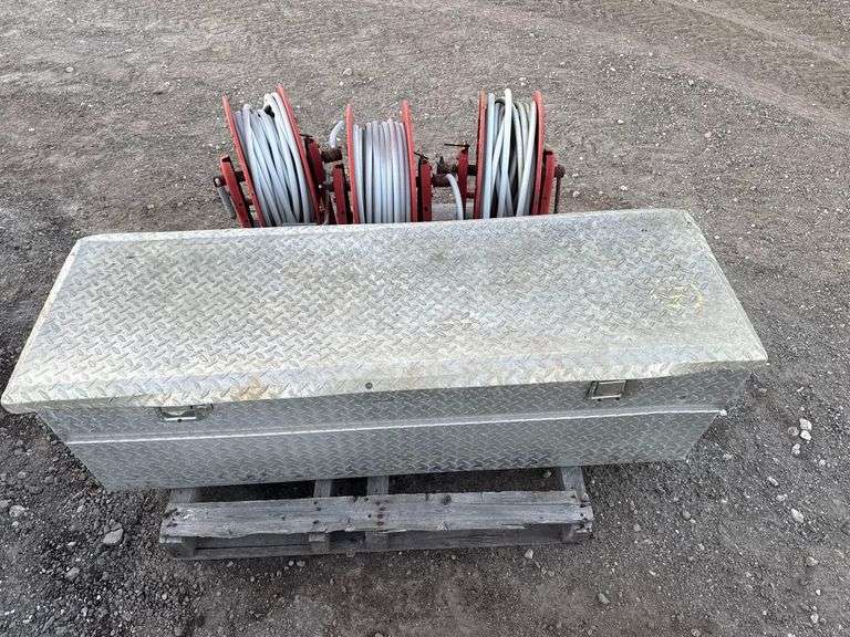 LOT 33 - 3 Hose Reels with Tool Box and Misc Hand Tools