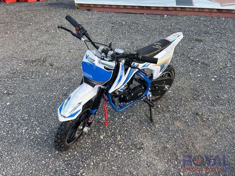 Powered by a 40cc 4-stroke Single Cylinder Gasoline Engine, Chain Transmission. Equipped with 22mph max speed, front and rear disc brakes, steel tube frame, 1.2L fuel tank, 165lb max load capacity, single rider seat. Runs and drives, Limited function check completed at check in.