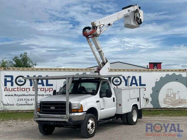 VIN:1FDAF56F2YED82361 Odom Reads 130,692 miles, pwd by Powerstroke 7.3L V8 turbo diesel engine, automatic transmission. Equipped with: Altec AT35-G 35ft bucket boom w/ lever controls, Altec service body w/ cargo compartments, 4x2 drive line, dual rear wheels, PTO switch, am/fm stereo, AC/heat. Runs, drives and operates. Limited function check completed during check in.