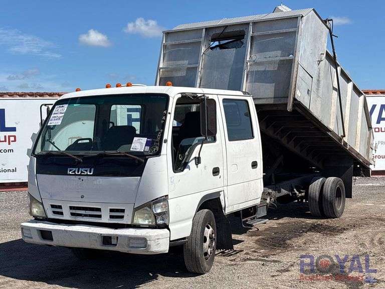 VIN:JALC4J16267006116 Odom Reads 338,253 miles, pwd by Isuzu 5.2L 4-cylinder turbo-intercooler diesel engine, automatic transmission. Equipped with: landscape dump body, hydraulic hoist, tarp system, rear swing gate, 4x2 drive line, dual rear wheels, pwr windows, mirrors and locks, am/fm/cd stereo, AC/heat. Runs and drives w/ jump pack. Transmission issue noted at check in.