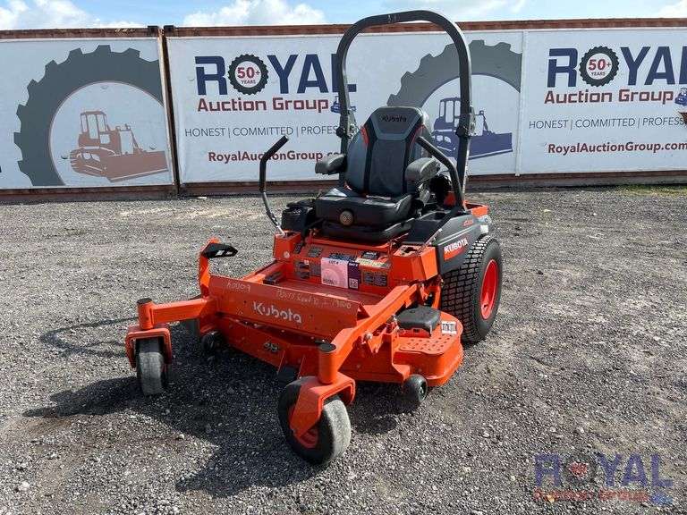 SN: KBGHGDD0CMGCA0009, Hours Read: 10 hours. Powered by a Kohler 22.5 HP Gasoline Engine, Hydrostatic transmission, Equipped with 48in deck, side discharge, belt driven deck with 3 cutting blades, foldable 2-post ROPS, High back seat with adjustable suspension, smooth lever operation, 11.6 gallons gas tank, adjustable levers and mower deck lift pedal. Runs, drives and operates. Kubota warranty until June 2026