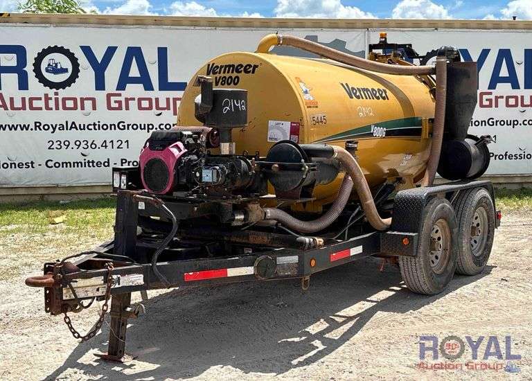 SN: V8S060313781, hour meter reads 392 hours, pwd by Honda GX660 2-cylinder gas engine. Equipped with: 800 gallon spoil tank, electric/hydraulic tank lift, hand wheel door opening, Roots rotary lobe blower, inlet/outlet valves with cam fittings, suction hose, strobe light, pintle ring tow hitch, heavy duty jack stand, trailer VIN: 1M9FE1229DS2.4154, GVWR 12,000 lbs, GAWR each axle 6,000 lbs. Runs and operates. Limited function check completed at check in.