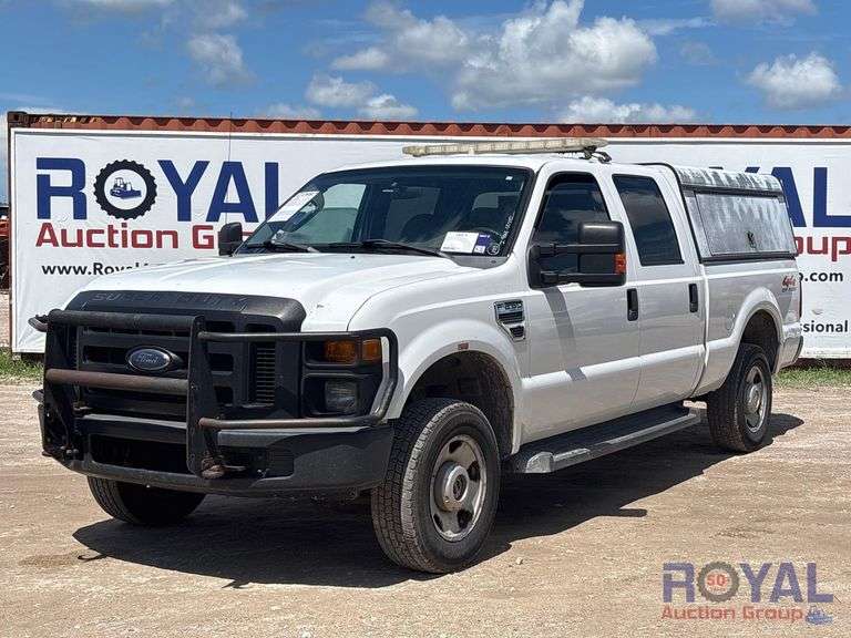 VIN: 1FTSW21558EA02094, odom reads 201,720 miles, mileage on title reads exempt. pwd by 5.4L V8 gas engine, automatic transmission. Equipped with: four wheel drive, 4WD, tow package, bed canopy cover with side openings, LED lighting, roof light bar with in-cab controller, running boards, front bumper and headlight guard, pwr windows, locks, and mirrors, crew cab, auxiliary switches, trailer brake control, AC/heat, am/fm stereo. Runs and drives. Limited function check completed at check in.