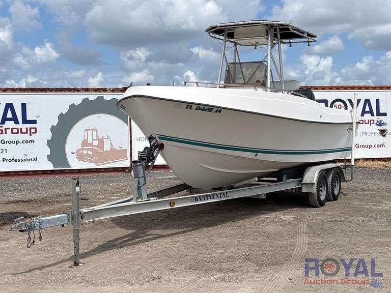 HIN: AQAN1048F394 Hours read 217 engine hrs. Pwd. by Mercury 225HP outboard engine. Equipped with 210 CCP center console pro, deep vee hull. Seller states recent tune up performed for plugs, filters, water pump and lower unit oil, hydrualic steering, two new interstate batteries. Runs and operates. Limited function check completed at check in. 24ft. Continental Boat Trailer included. VIN: 1ZJBA2225VM049872 seller states trailer has 4 new carlisle tires, new hubs and bearings and new running lights.