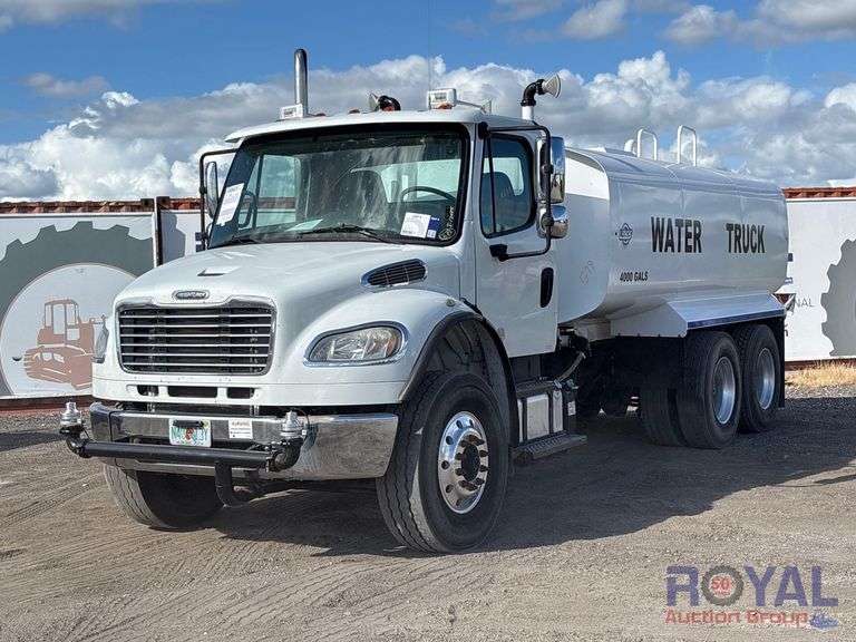 VIN:3ALHCYCY5HDJD6749 Odom Reads 275,646 miles,(miles exempt on title) pwd by Cummins ISL 8.9L 6-cylinder diesel engine, Allison automatic transmission. Equipped with: 4,000 gallon water tank body, rear mounted hose reel, Transporter's Choice TC3ZRM water pump, tandem axle drive, GVWR 60,000 lbs, front GAWR 20,000 lbs, int1 GAWR 20,000 lbs, and rear GAWR 20,000 lbs, air suspension and brakes, in-cab water tank control panel, diff lock, cruise control switch, pwr locks, am/fm/cd stereo. AC/heat. Runs and drives. Limited function check completed during check in.