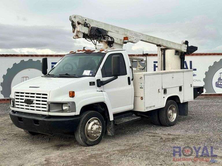 VIN: 1GBE4C1E65F526423 Odom Reads 125,128 miles, mileage on title reads exempt, pwd by 8.1L V8 gas engine, automatic transmission. Equipped with: Altec bucket boom w/ control panel, Altec service body w/ cargo compartments, 4x2 drive line, dual rear wheels, am/fm radio, AC/heat. Runs and drives. PTO does not engage. Limited function check completed during check in.