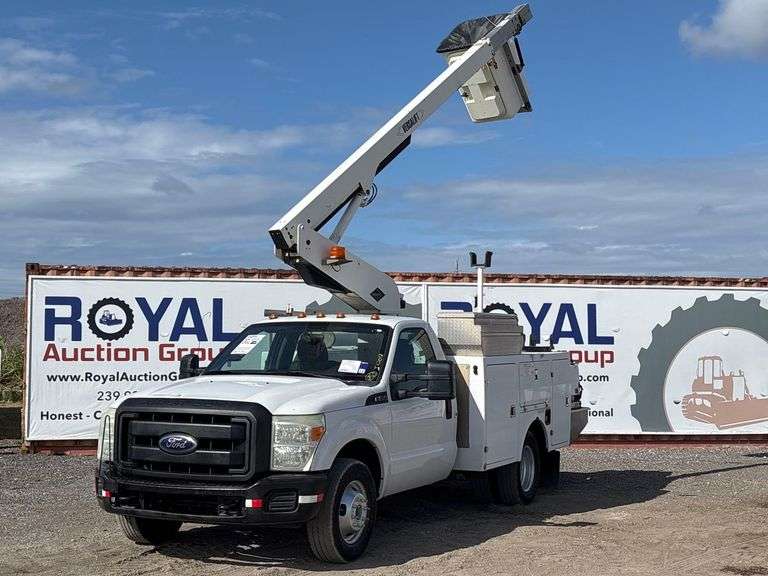 VIN: 1FDRF3G69BEC75174, Odom Reads: 84,809 miles; miles not actual. Powered by a 6.2L V8 Gasoline Engine, Automatic Transmission. Equipped with Versalift bucket body, 29F ft. max platform height, 350 lb. max platform capacity, tow package, rear work platform, auxiliary Cummins 5.5HGJAD-2558E gasoline engine, cargo storage box, steering wheel cruise controls, laptop stand, auxiliary engine toggle switch controls, infotainment system, climate controls, 12V charging. Runs, drives, and operates, Limited function check completed at check in.