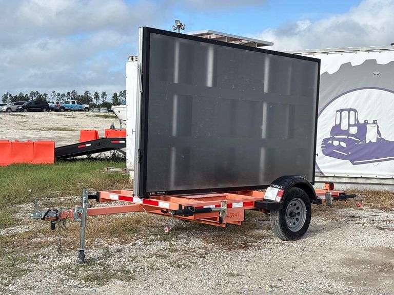 Pasco County BOCC VIN: 1K9BM8016MT244753 Equipped with 18in. character height, 3 lines of text, 8 characters per line, 4 LEDs per pixel, 1 mile visibility, 30 degree viewing angle, self contained controller with keyboard, 215 pre-programmed messages, 100 user programmable messages, 220w solar panel, 60 amp battery charger, 24 hour re-charge time, 2 in. ball hitch, four adjustable corner jacks, tongue jack, electro-hydraulic raise and lowering system. Non-Runner