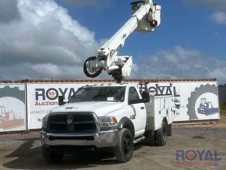 VIN:3C7WRMAL6DG588250 Odom Reads 128,692 miles, pwd by Cummins 6.7L 6-cylinder turbo diesel engine, automatic transmission. Equipped with: Altec AT37G bucket boom w/ lever controls, 37ft platform height, 400 lb platform capacity, service body w/ cargo compartments, tow ball hitch, dual rear wheels, GVWR 18,750 lbs, front GAWR 7,000 lbs, and rear GAWR 13,500 lbs, nerf step bars, steering wheel cruise, infotainment system, bluetooth connectivity, am/fm radio, AC/heat. Runs, drives and operates. Limited function check completed during check in.