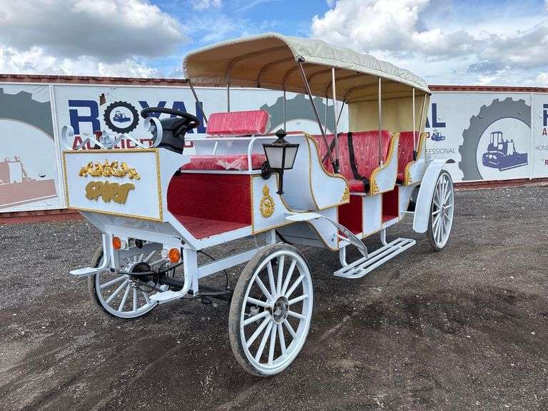 Hours Read: 0 hrs. Pwd. by 60v battery system. Equipped with five 12v batteries, onboard charging system, seat belts, headlights, tail lights, break lights, horn and emergency brake. Runs and drives. Limited function check completed at check in.