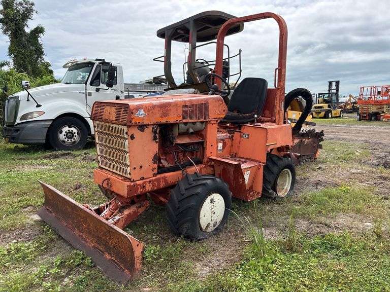 SN: 3R0830, Hours Read: 770 hours. Powered by a Deutz 1011 Turbo Diesel Engine, Hydrostatic Drive. Equipped with 72 in. rear adjustable hydraulic trencher, front 64in. 4 way knockdown blade, adjustable throttle, forward and reverse lever, lever trencher controls, joystick blade controls, 2-post ROPS. Non runner.