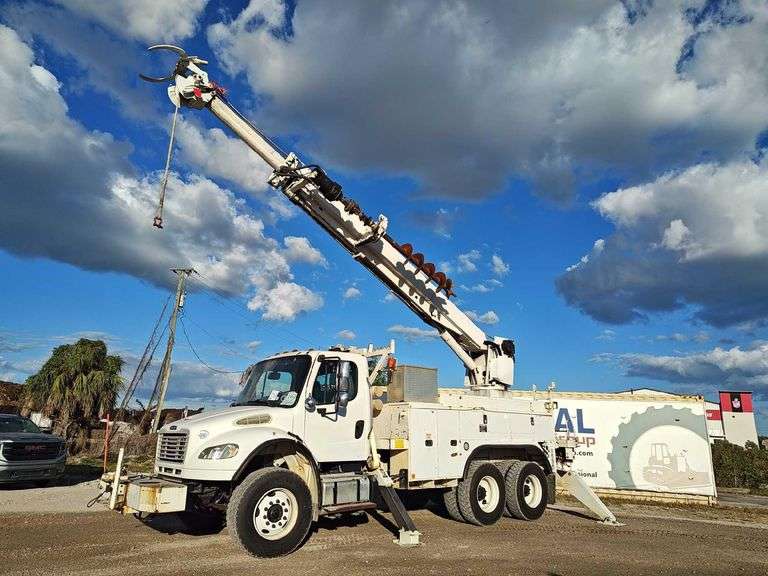 VIN: 1FVHCYBS7DHBM2822, Odom Reads: 53,171 miles. Powered by a Cummins 8.3L 6-cylinder Diesel Engine, Allison Automatic Transmission. Equipped with Altec D2050ATR Digger Derrick body, 14,600lb capacity cable winch, four corner hydraulic stabilizers, body storage compartments, tow package, dual wheel rear axles, PTO switch (9,268 hours) work lights, air brakes, trailer air supply, AM/FM stereo with AUX input, climate controls, 12V charging. Runs and drives. Safety sensor faulty, hydraulics engage, upper unit condition unknown. Limited function check completed at check in.