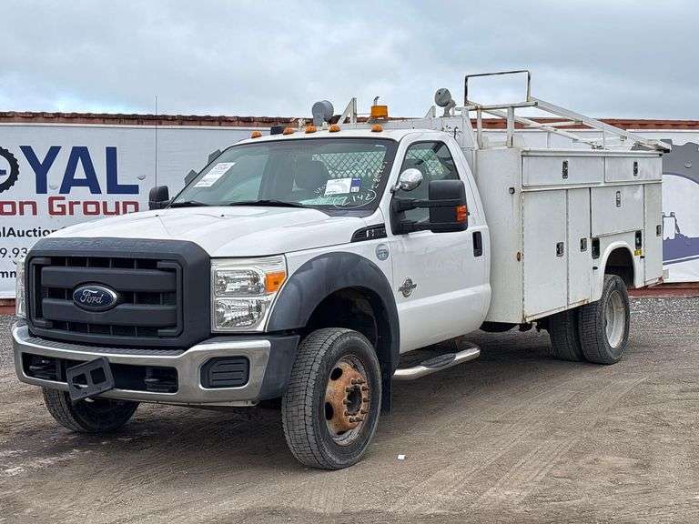 VIN:1FDUF5GT6CED10248 Odom Reads 143,580 miles, pwd by Powerstroke 6.7L V8 turbo diesel engine, automatic transmission. Equipped with: Knapheide service body w/ cargo compartments, hydraulic Tommy liftgate, tow package, back rack, work lights, utility racks, 4x2 drive line, dual rear wheels, GVWR 19,500lbs, front GAWR 7,000 lbs, and rear GAWR 14,706 lbs, pwr windows, mirrors and locks, steering wheel cruise, am/fm/cd stereo, auxiliary switches, AC/heat. Runs and drives. Limited function check completed during check in.