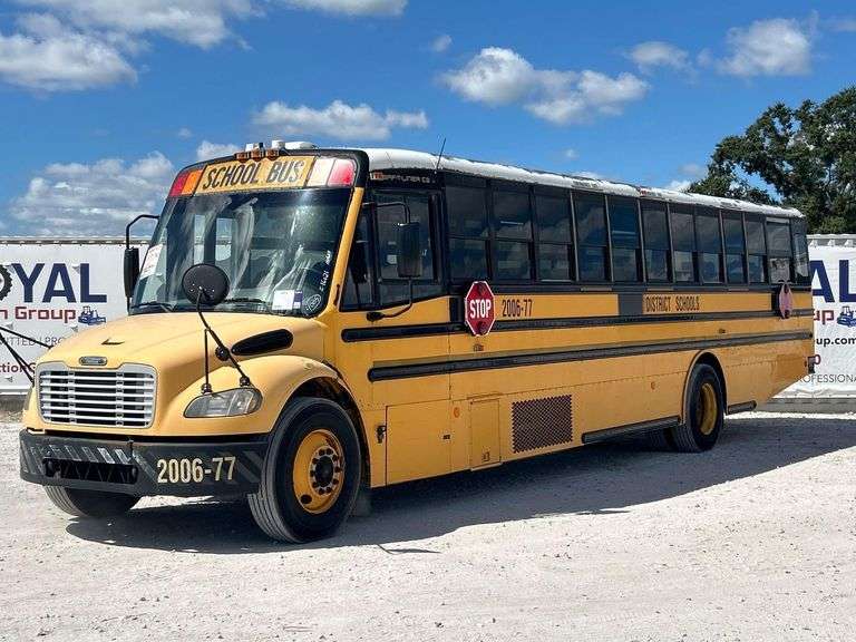Citrus County School Board (2006-77) VIN:4UZABRCS97CX43227 Odom Reads 308,242 miles, pwd by 6.4L 6-cylinder diesel engine, Allison automatic transmission. Equipped with: 77 passenger seating, emergency exits, GVWR 33,000 lbs, front GAWR 10,000 lbs, and rear GAWR 23,000 lbs, 4x2 drive line, dual rear wheels, bi-fold entrance door, air brakes, cruise control, am/fm/cd stereo, front and rear AC control. Runs and drives. Limited function check completed during check in. Miles exempt on title.