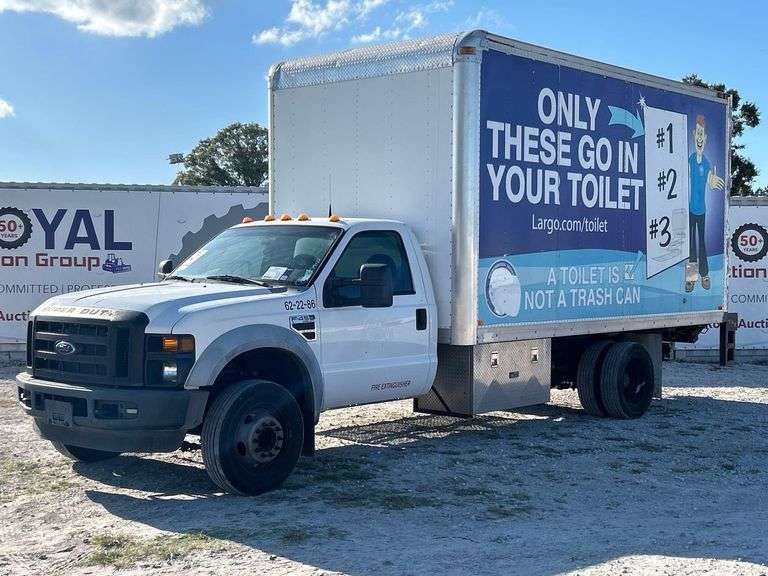 City of Largo,(62-22-86); VIN: 1FDAF4GY9AEB36410, Odom Reads: 51,874 miles. Powered by a 6.8L V10 Gasoline Engine, Automatic Transmission. Equipped with 16ft box body, GVWR 16,500lbs, front GAWR 6,000lbs, rear GAWR 12,000lbs, dual wheel rear axle, hydraulic tuckaway tailgate lift, AM/FM stereo, auxiliary switches, climate controls, 12V charging. Runs and drives, Limited function check completed at check in.