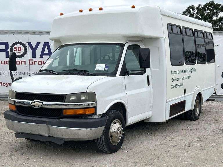 VIN:1GB6G3AG6A1152853 Odom Reads 52,502 miles, pwd by 6.0L V8 gas engine, automatic transmission. Equipped with: 12 passenger seating, wheelchair lift, tow package, bi-fold entrance door, dual rear wheels, steering wheel cruise, am/fm/cd stereo, front and rear AC control. Runs and drives. Limited function check completed during check in.