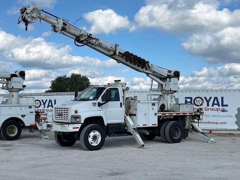 Withlacoochee River Electric Cooperative (49-4) VIN:1GDP8C1B27F424758 Odom Reads 87,622 miles, pwd by Duramax 7.8L 6-cylinder diesel engine. Allison automatic transmission. Equipped with: Altec DM47 digger derrick boom, winch capacity 15,000 Ibs, platform seating, digger derrick control panel, service body wi cargo compartment, tow hook, mid and rear hydraulic stabilizers, 4x2 drive line, dual rear wheels, air brakes, trailer air supply in-cab PTO switch, am/fm stereo, AC/heat. Runs, drives and operates. Limited function check completed during check in.