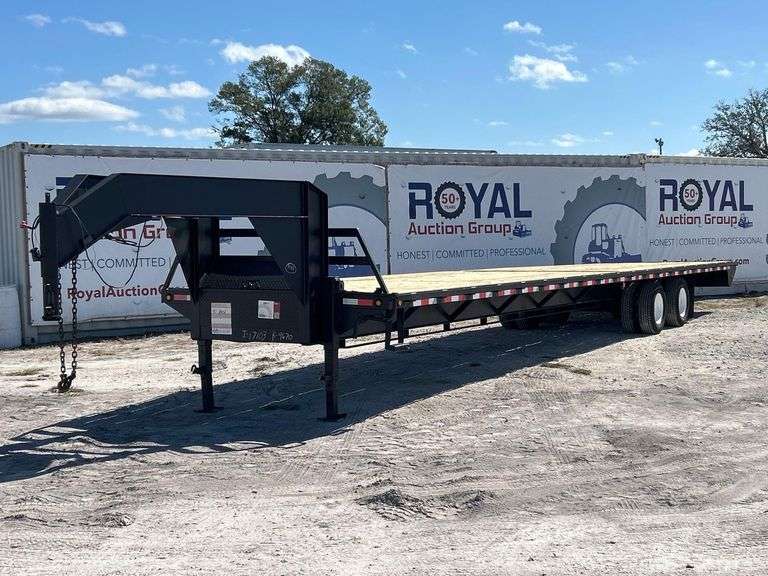 VIN: 5VYGF40228H001375, 40ft length, wooden deck, electrical hookup, dual wheel axles, manual landing gear, gooseneck hitch.